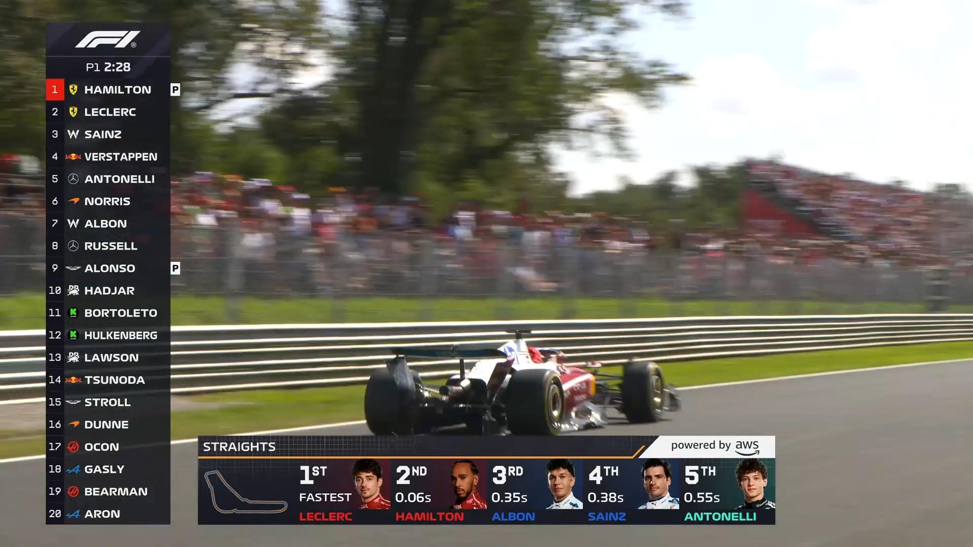 F1意大利站一练:法拉利全场最快,塞恩斯第3,安东内利第5